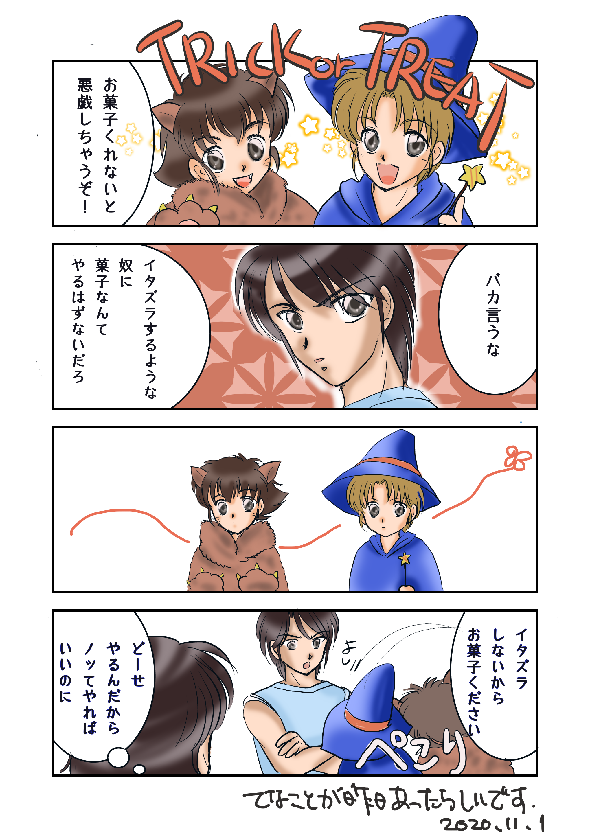 ハロウィーンです。きっとこんなネタは大好きなはずの『TWINS』とそれを認めつつもただでは転ばない+2です。(20201101)