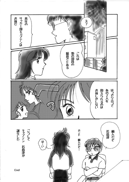 東邦学園中等部、小ネタです。何故若島津がキャプテンに選ばれたか。何のことはございません。単にあの二人を御することができるのは彼だけだと思われたからなんですね〜(笑)。でも、うちの若島津さんは結構策士なので、いいように二人を使って結局はどちらかがキャプテンになるよりも部員はきつい思いをしたのだと思います。それに気づかせないところが…やっぱり策士(笑)。(110919)