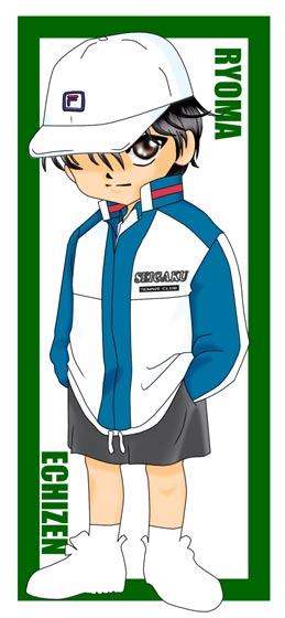 その辺のノートの切れっ端に落書きしたのをスキャンして色を塗ったんですが、なんだか納得できず、主線をパスで引き直して色を塗ったものです。やはり、私はこのラインが一番描きやすいラインのようです。でも、これで一番苦労したのは、実は青学のロゴだったりする…。