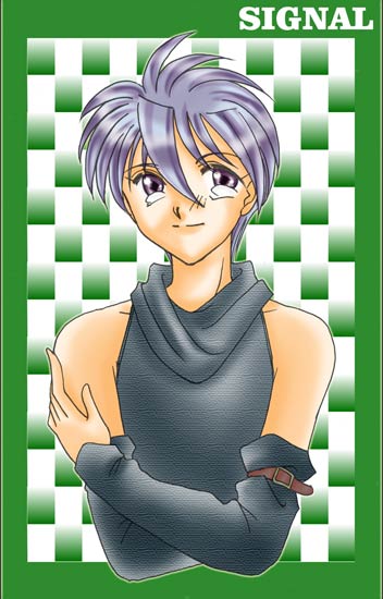 if版シグナル君です。てろんとした襟の服が描きたかったのでこうなりました。服はテクスチャでちょっとらしくしてありますが、あまり小技がきいていません(涙)。髪の流れとかつやとかにやたらと苦労が見られます。