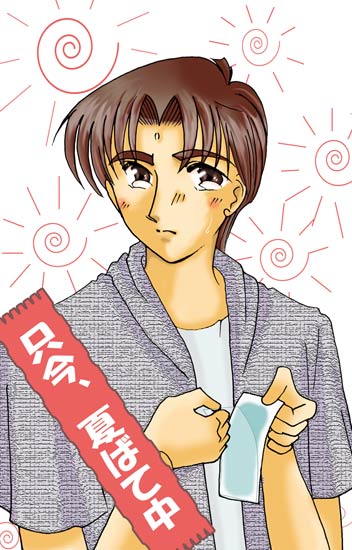 先月と同じ方法で線画を取り込みました。更に主線を抽出しやすくするためにかなり無理矢理なコントラストを取ったので、主線が変にべったりした印象です。尤も、1/4に縮小されているのでこの絵からはわからないと思うのですが…。私も愛用している冷えピタシートで暑さ対策をするクルさんです。