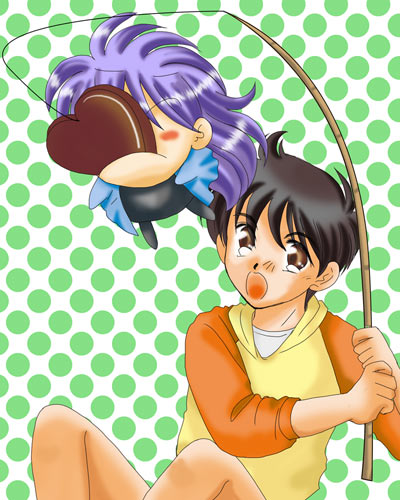 えーと、2月なのでヴァレンタインネタです。チョコと言えばちび!ちびと言えばチョコってな訳で、ちび&信彦です。いつも信彦ってうまく描けないんですが、ちょっと気持ちよく描けました。でも、主線描き終わってから、(ああ、信彦ってあんまり半ズボンって履かないよなあ)などと思ったり(苦笑)。 今回も、主線はペインター、色塗りはフォトショでした。