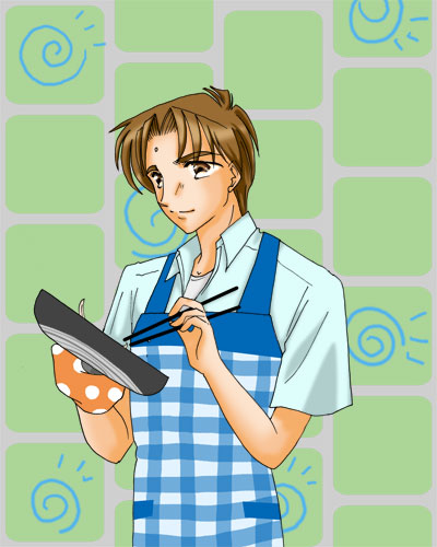 クルさんです。なんか下書きの時にはふつーに料理をしていたはずだったのですが、できあがってみたら、何か自慢げです…。なぜなんでしょう。苦労したのは箸の持ち方です!ずばり(笑)。